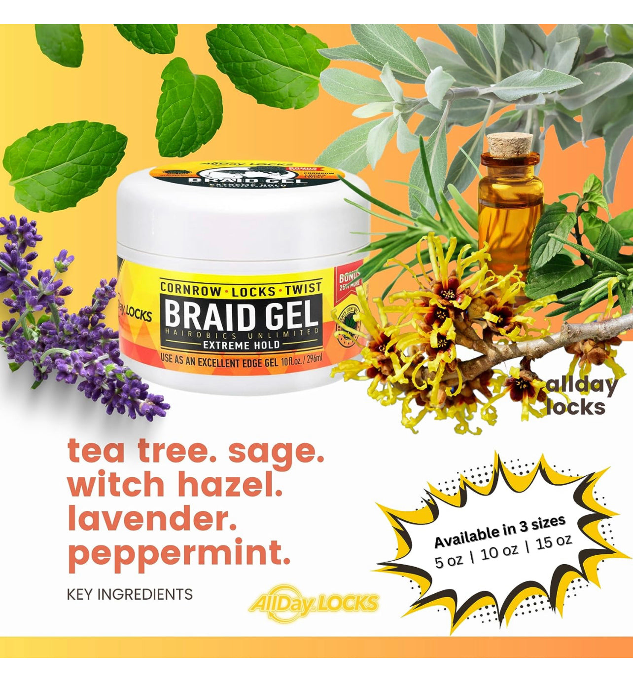 AllDay Locks Braid Gel | Extreme Hold, Smooths & Tames Frizz | No Flaking or Drying | High Shine, Long Lasting for Braids, Locks, Twists, Cornrows | 5 oz